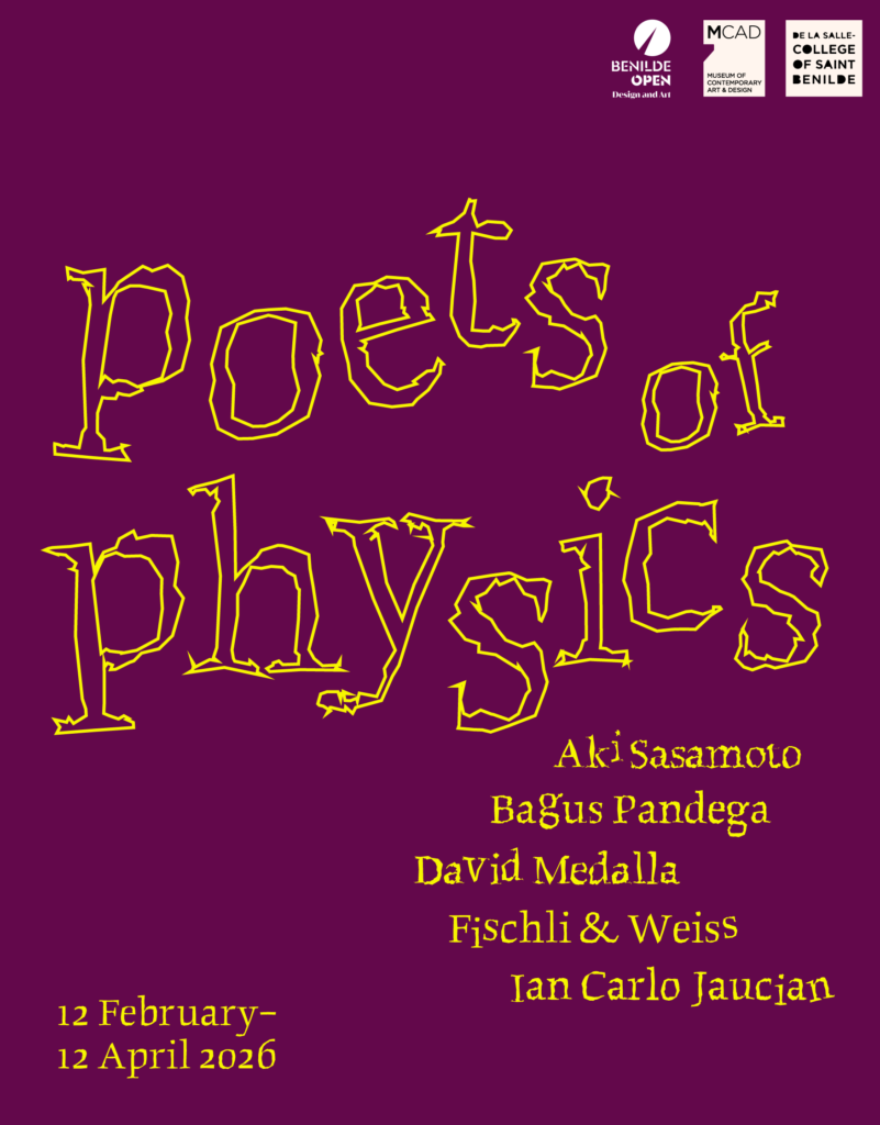On 12 February 2026, The Museum of Contemporary Art and Design (MCAD) Manila will open “Poets of Physics,” featuring the works of Aki Sasamoto, Bagus Pandega, David Medalla, Fischli and Weiss, and Ian Carlo Jaucian, as part of the Benilde Open Design + Art with its theme “Extension of Nature.”